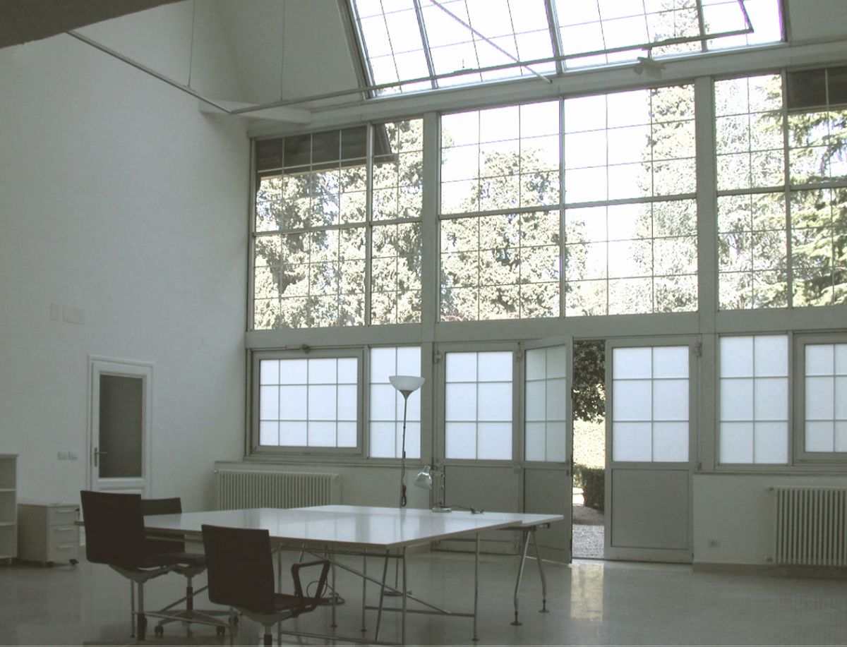 Il restauro della villa principale è stato volto al recupero dell’impianto originale, inserendo elementi moderni solo negli ambienti di servizio e,in alcune partizioni interne, demolendo tutte le superfetazioni, e recuperando la spazialità interna originale. L’antica rimessa per carrozze, utilizzata come ufficio amministrativo, è stata trasformata in atelier per gli artisti. L’edifico, parzialmente pericolante, è stato ricostruito rispettandone la forma originaria. All’interno, sono stati realizzati tre ambienti espositivi di grande suggestione.