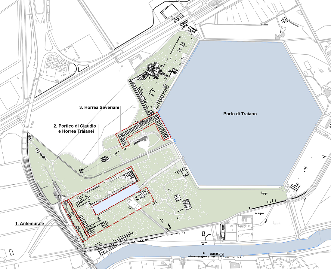 Recupero e valorizzazione dell’area archeologica dei Porti Imperiali di Claudio e Traiano: Antemurale, Portico di Claudio, Horrea Traianei, Horrea Severiani