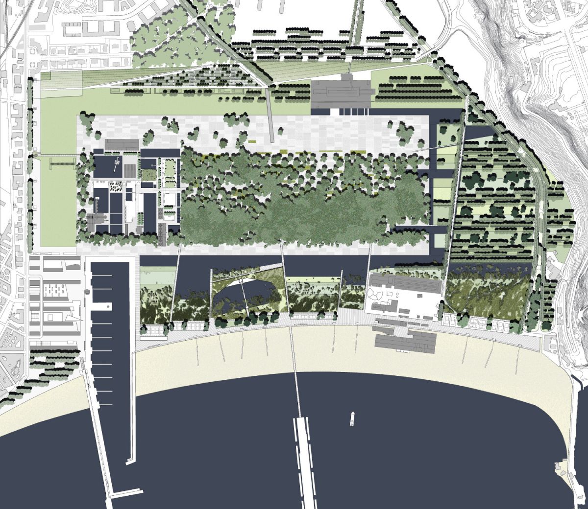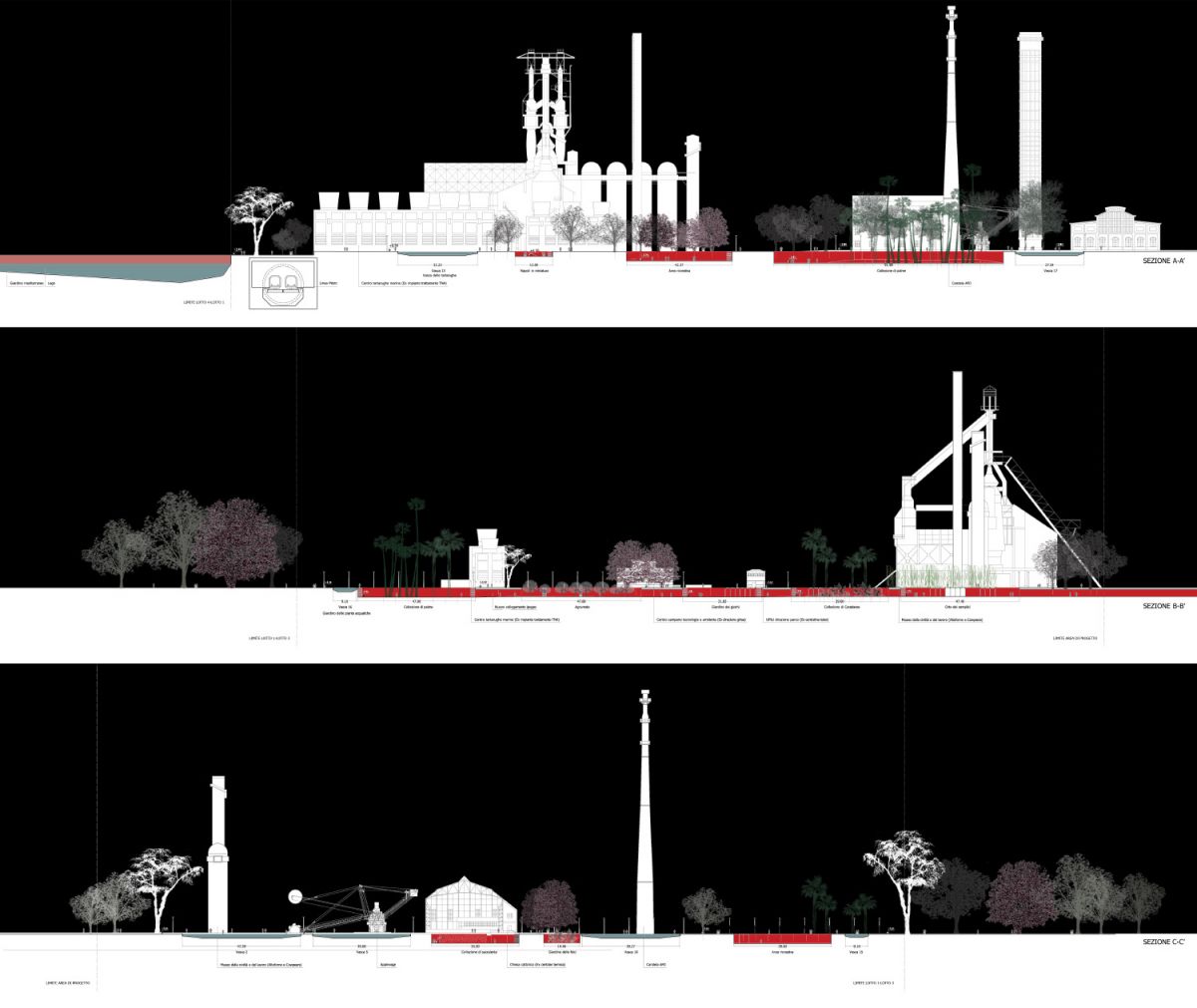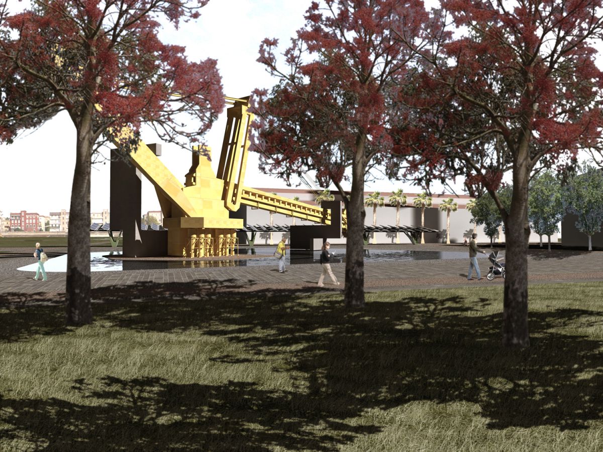 ll progetto si inserisce nel percorso definito dal concorso internazionale indetto per il recupero dell’area ex Italsider, che prevede, secondo il Piano Regolatore e gli strumenti attuativi, un grande parco urbano di oltre 120 ha al centro dell’area. I grandi manufatti dell’acciaieria, dell’altoforno, delle officine meccaniche sono immersi nel sistema verde del parco e restano a testimonianza del passato industriale dell’area, monumenti di una storia recente. Le nuove funzioni vengono invece ospitate entro nuovi edifici più adatti e funzionali, collocati sul perimetro dell’area, verso la città.