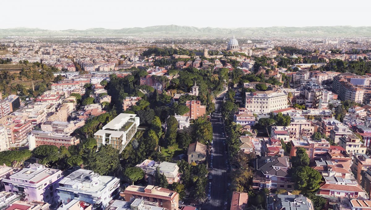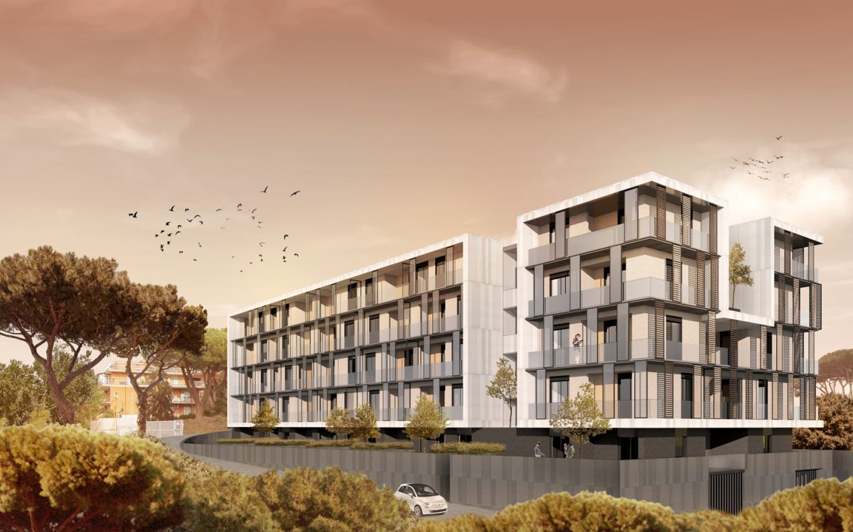 L’intervento riguarda la realizzazione di un edificio residenziale nel quartiere Aurelio, alle spalle del Vaticano. In posizione panoramica, immerso nel verde, l’edificio insiste su un lotto in pendenza e si sviluppa su 5 piani di altezza, oltre ad un garage seminterrato; il piano di copertura ospita una grande terrazza-solarium condominiale.